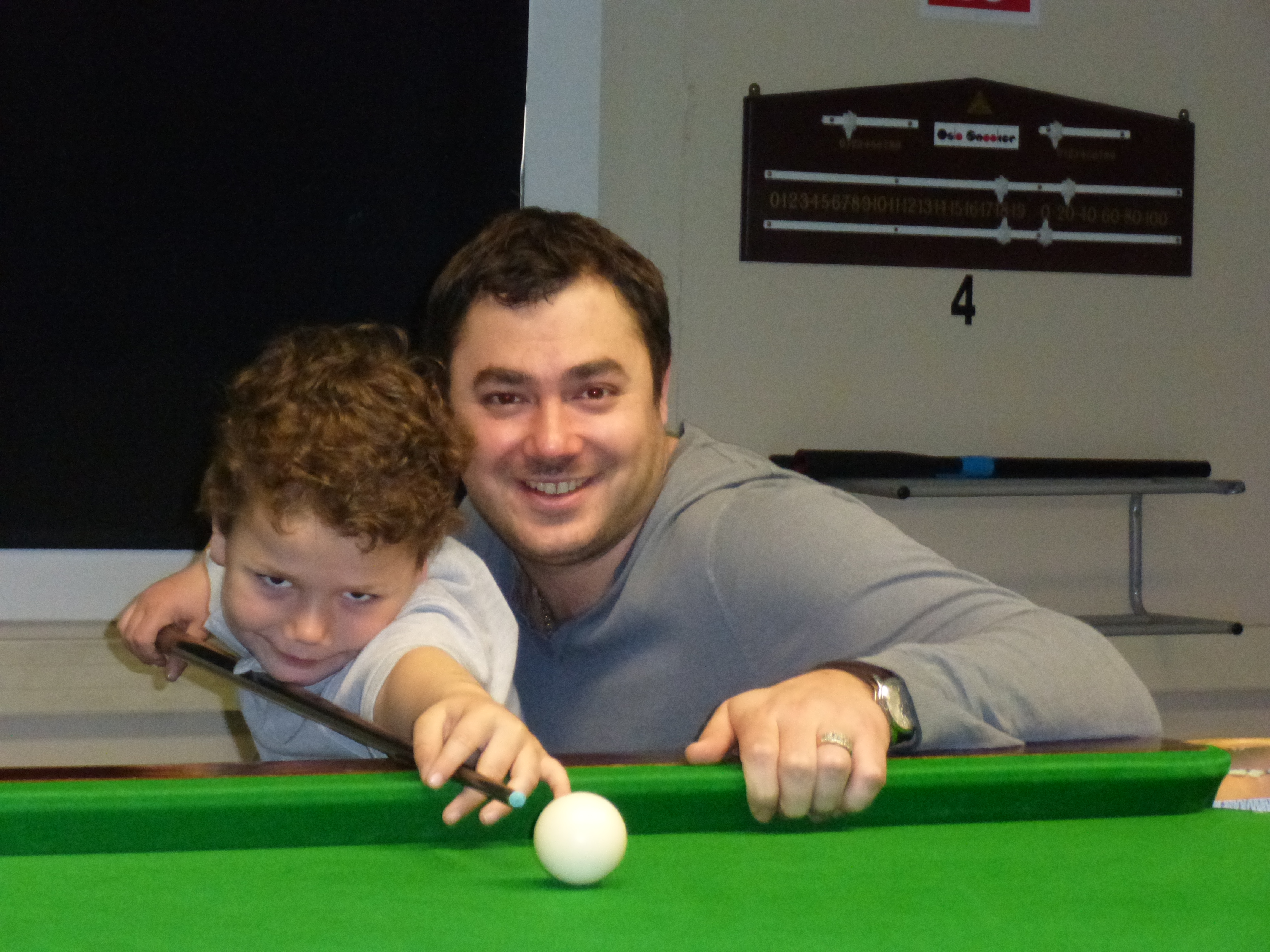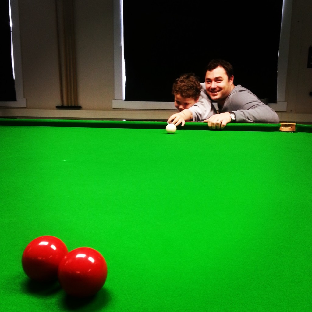 K: Sønnen min har spilt en sju åtte ganger. Jeg vil ikke presse han. Mase på han. Vil han bli seriøs så skal jeg hjelpe han. Han er med ned hit av og til, spiller litt snooker, sitter litt med Ipaden, men snooker er ikke en sport du bare kan spille et par ganger i uka hvis du vil bli god.