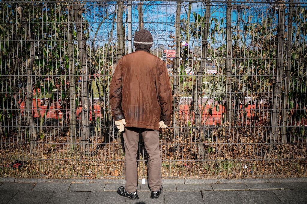 Da de kom til gittergjerdet som gikk rundt idrettsanlegget ble han stående mens hun fortsatte å gå. Hun ble mindre og mindre foran ham, til slutt forsvant hun rundt hjørnet.
